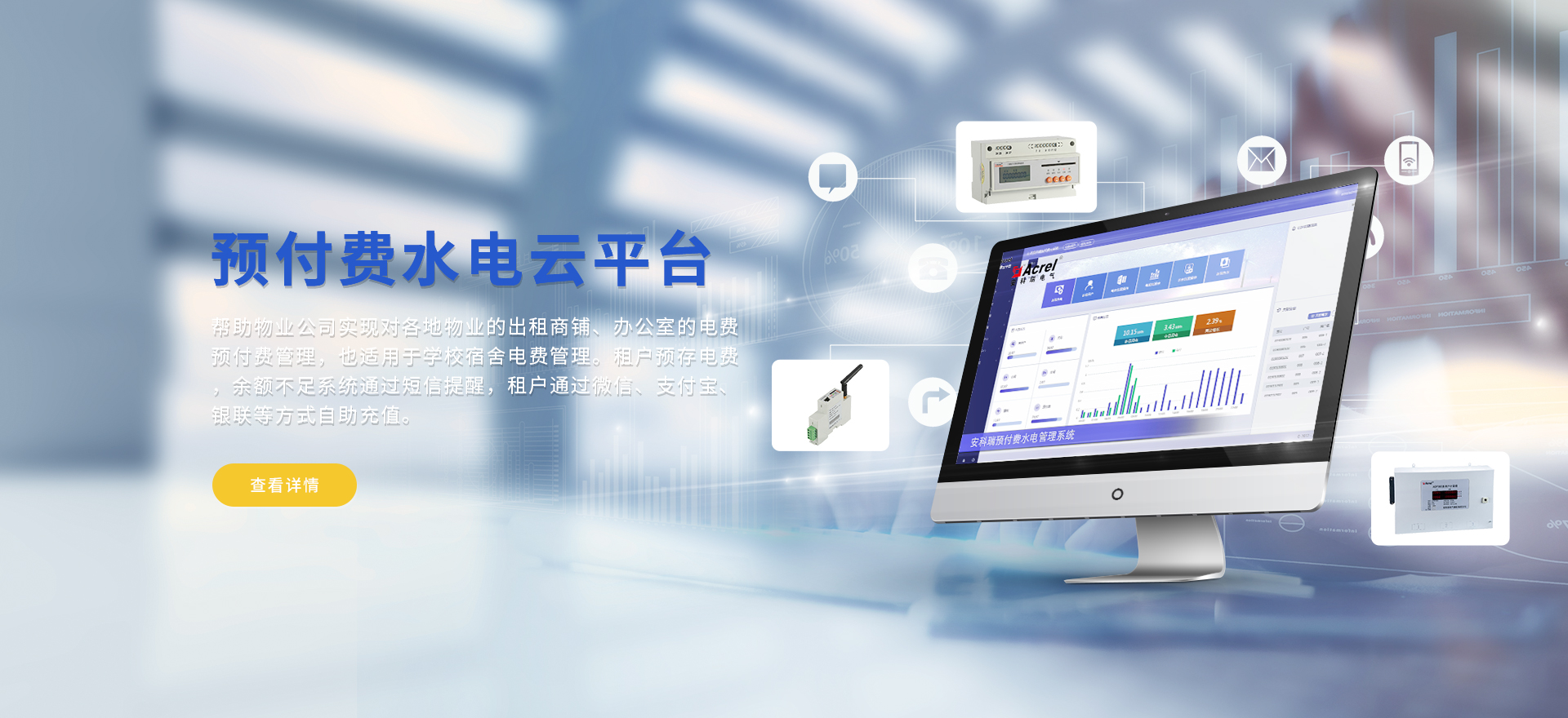 安科瑞提供的解決方案包括Acrel-EIoT能源物聯網云平臺變電所運維云平臺安全用電管理云平臺、環保用電監管云平臺智慧消防云平臺能源管理云平臺、工業企業能源管控平臺、遠程預付費云平臺餐飲油煙監管云平臺電動汽車/電瓶車充電樁收費管理云平臺、電力監控/無線測溫系統、電能質量治理系統、電氣火災監控系統消防設備電源監控系統防火門監控系統應急照明和疏散指示系統、智能照明控制系統、醫用隔離電源絕緣監測系統等,幫助用戶實現能源智能化、可視化、精細化管理,提高用能效率和用能安全,為企業節能降耗和實現能源數字化建設提供數據服務。